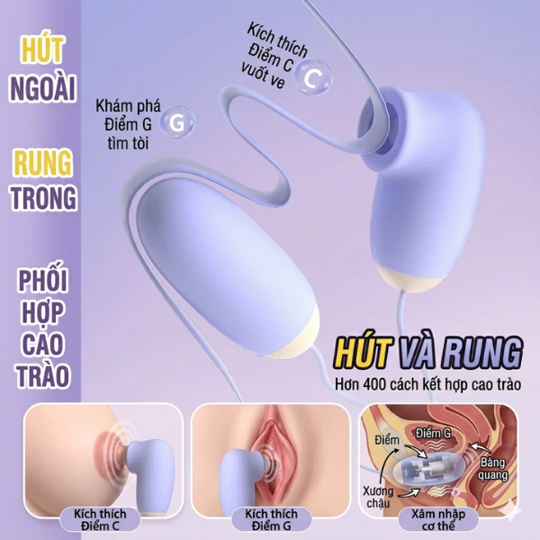 – Một đầu hút riêng biệt có thể vừa kích thích hotle và điểm G đồng thời.