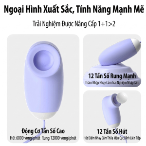 Magic Box thiết kế nhỏ gọn, tông tím pastel sang trọng, tích hợp 2 chức năng: hút – trứng rung, mang lại trải nghiệm đa dạng và mới lạ. Có điều khiển có dây tiện lợi, dễ sử dụng, phù hợp cả người mới lẫn người đã có kinh nghiệm. Sản phẩm không chỉ giúp thư giãn, giải tỏa căng thẳng mà còn là “trợ thủ” lý tưởng cho cá nhân hoặc cặp đôi muốn nâng tầm cảm xúc.